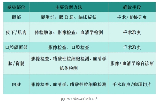 曼氏裂頭蚴病的臨床誤診率可高達(dá)57.7%,其主要原因是醫(yī)生對該病了解不足,缺乏足夠警惕。僅進(jìn)行常規(guī)血液檢查因缺乏特異性也難以確診。當(dāng)醫(yī)生意識到“可能是寄生蟲感染”時,往往已經(jīng)過了數(shù)月甚至數(shù)年,期間患者可能多次復(fù)發(fā)且病情加重。