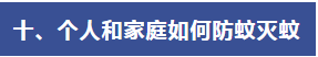 (一)個人防護。疫點周邊或蚊蟲活躍區(qū)域,居民應做好個人防護,出門穿著淺色長袖衣褲減少皮膚暴露,必要時使用驅蚊液、驅蚊貼等產品。室內可安裝紗門紗窗,夜間睡眠時使用蚊帳。